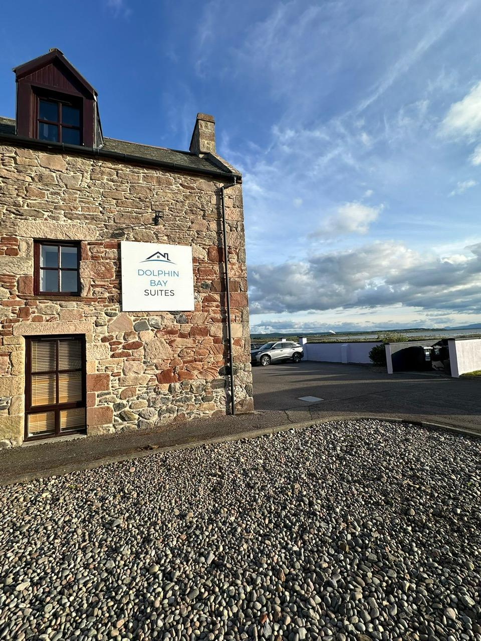 Eight minutes northeast of the Inverness airport, there's a small village of Ardesier with lovely Dolphin's Bay Suites well situated right on the Firth.Nice clean well maintained apartments of multiple sizes, most with kitxhens and porches. Great stay.