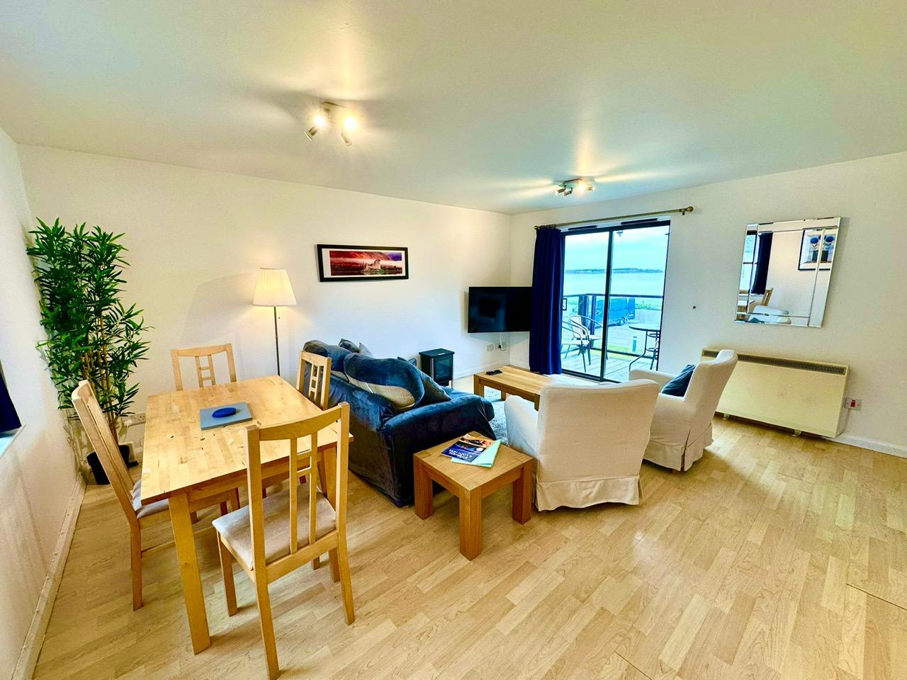 Relax in our modernised one bedroom apartment suitable for up to six guests. Offering two private bedrooms with a double bed (one double bed per room) accommodating four guests. Moving into the lounge, a sofa bed is available for another two guests. Exclusive bathroom within the apartment, a shower over the bath, spacious hallway leading to the kitchen - lounge. Private balcony with table and chairs, offering gorgeous views over the bay.